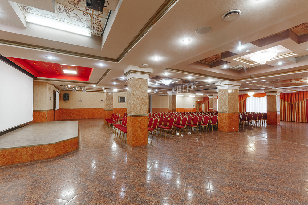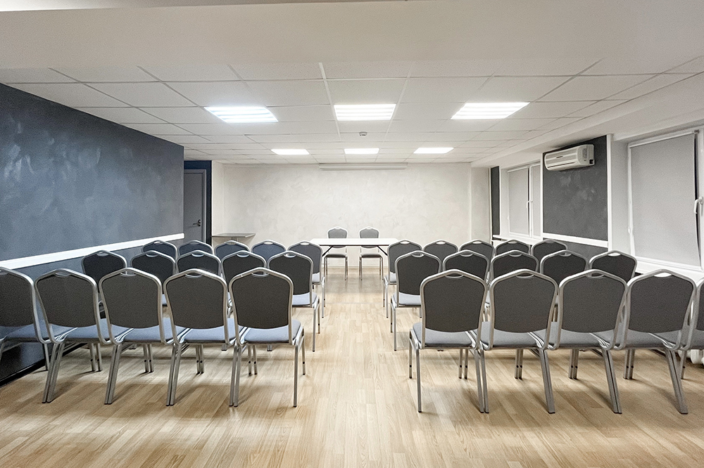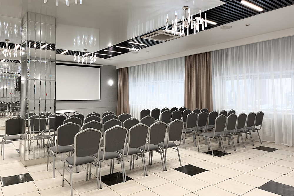 Прекрасно подходит для проведения тренингов, семинаров и любых других деловых мероприятий с количеством участников до 160 человек.