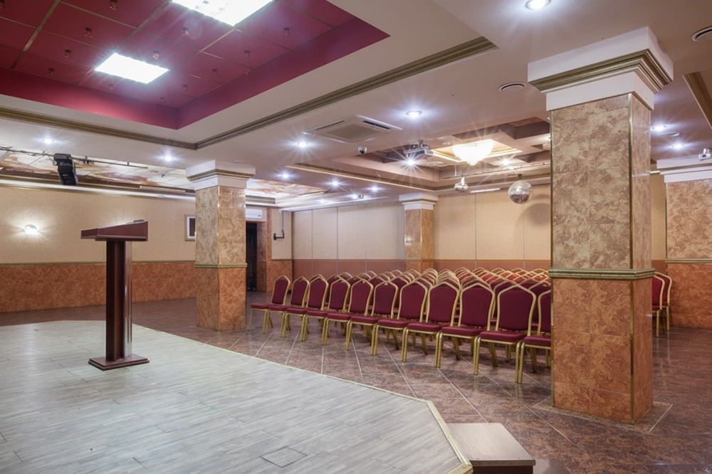 Отличное место для проведения семинаров, конференций, собраний с самым разнообразным количеством участников. В зале возможны различные варианты расстановки мебели.