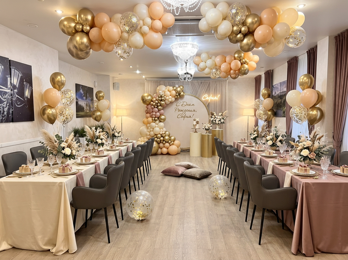 Просторный зал создан для проведения банкетов в атмосфере уюта и комфорта. Благодаря грамотному зонированию пространство легко трансформируется под ваши задачи, будь то торжественный ужин, юбилей или корпоративное мероприятие.